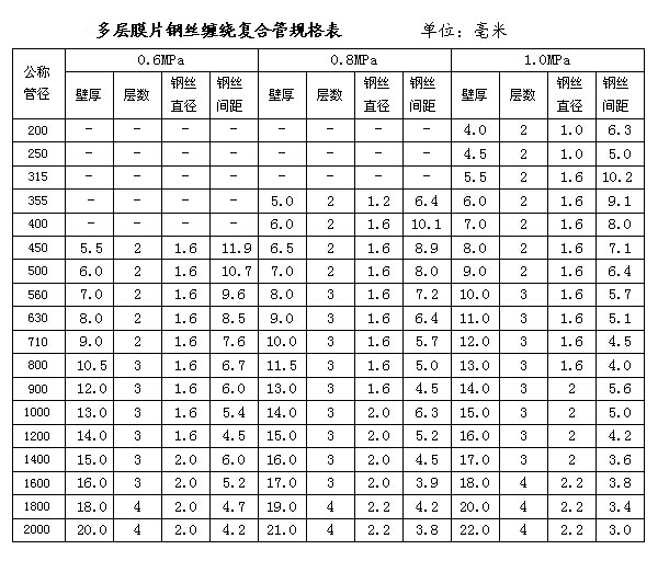 超高钢丝网骨架聚乙烯多层江南游戏·(中国)官方网站复合管规格表 (单位:毫米)